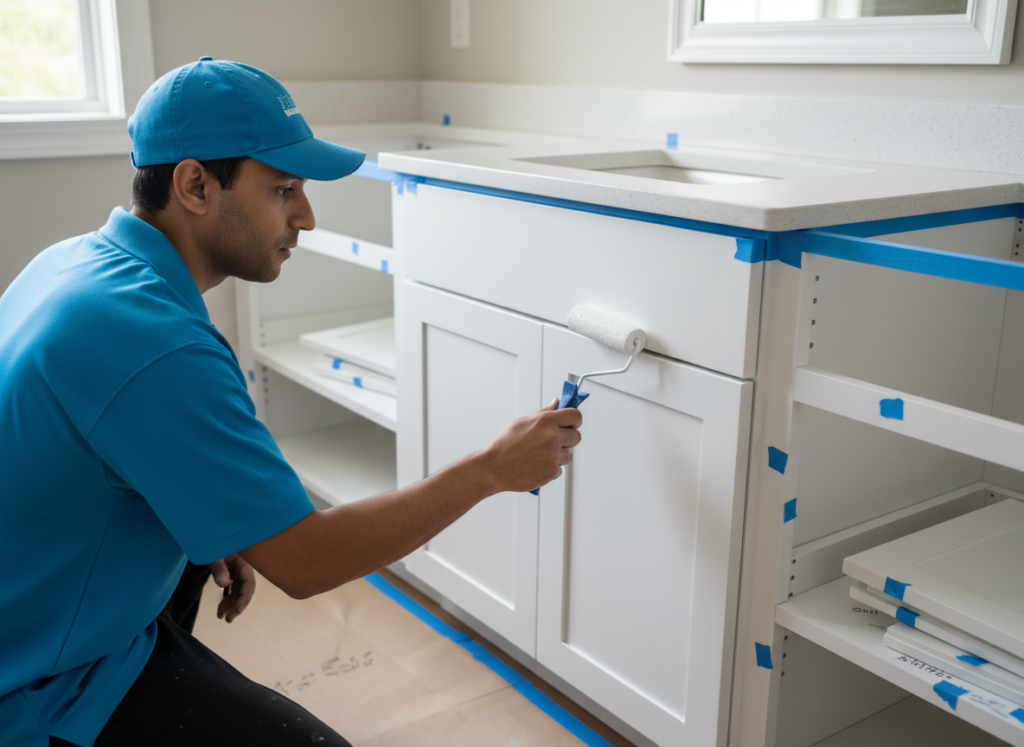 - Worn, dated kitchen cabinets → deep-clean and degrease, scuff-sand, prime, then spray a smooth enamel finish for a brighter, more modern look that feels close to factory-new